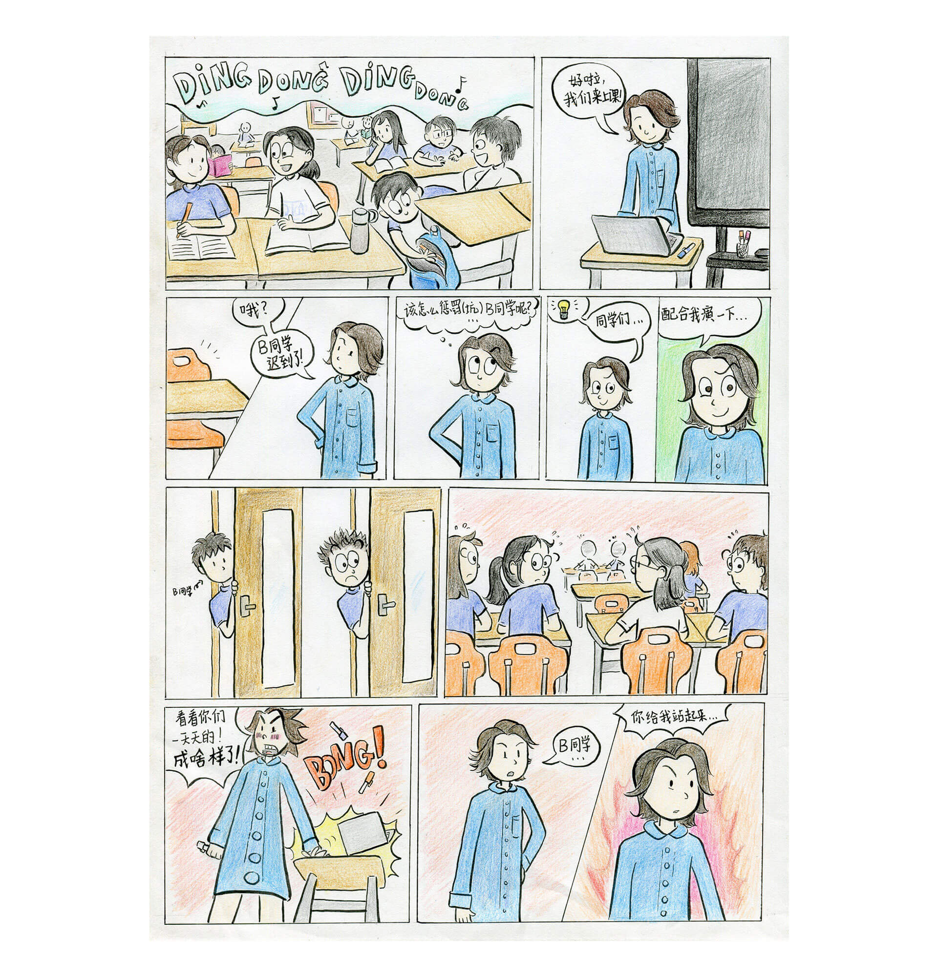 The following pages are my interior illustrations for the book, including funny and warm moments of everyday teacher-student interaction. There are a lot of inside jokes, but I tried to create comics that everyone can laugh at while reading!