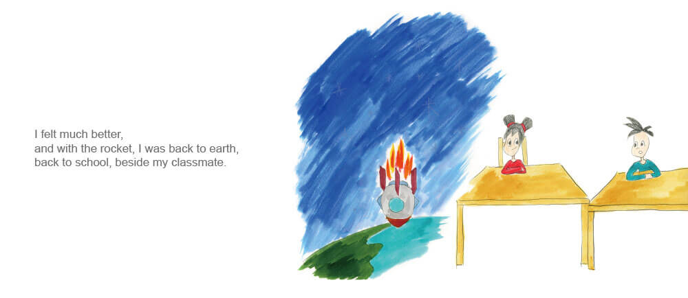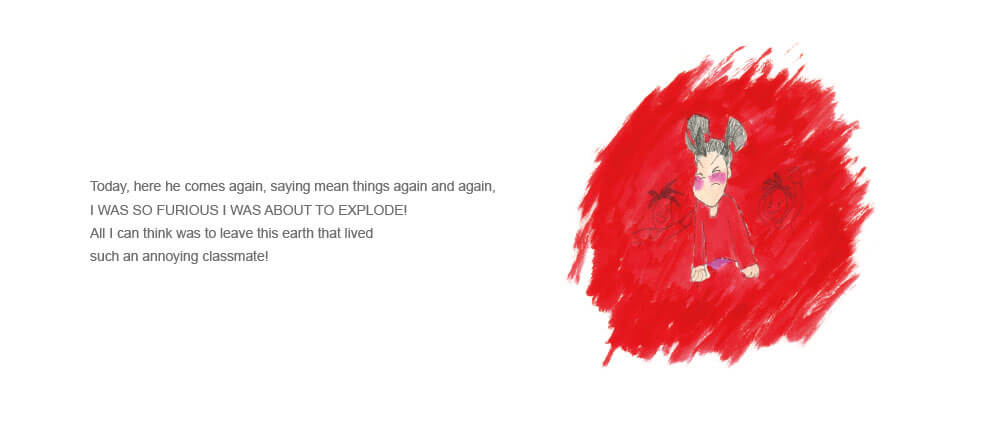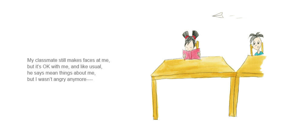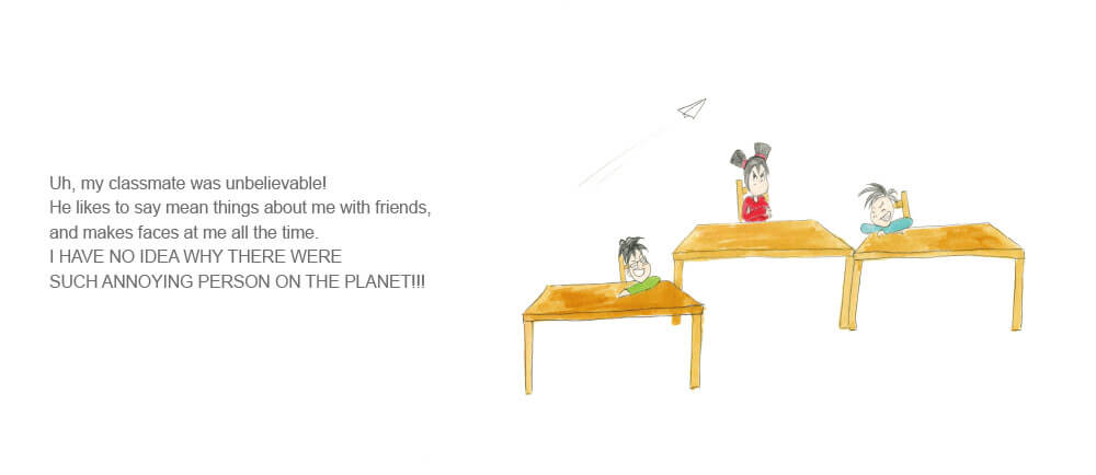 This book was inspired by a true story—in 4th grade, I was annoyed by my classmate who would disagree with me on everything and make fun of me. Through this book, I shared the lesson I learned from solving the "annoying classmate" issue--- embracing differences and trying to cooperate.
